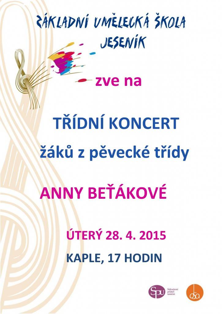 KONCERT ŽÁKŮ Z PĚVECKÉ TŘÍDY ANNY BEŤÁKOVÉ