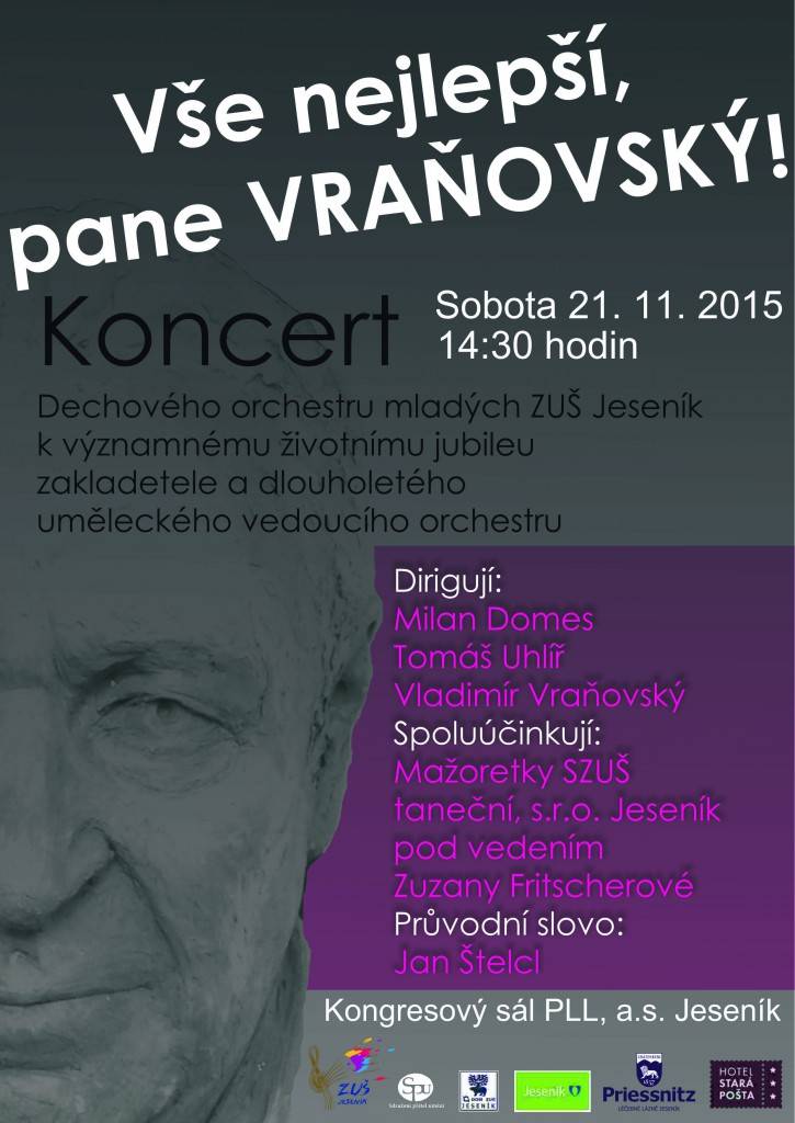 Vše nejlepší, pane VRAŇOVSKÝ!Koncert Dechového orchestru mladých ZUŠ Jeseník 21.11.2015 - 14.30 hodin - Kongresový sál PLL a.s. Jeseník - lázně