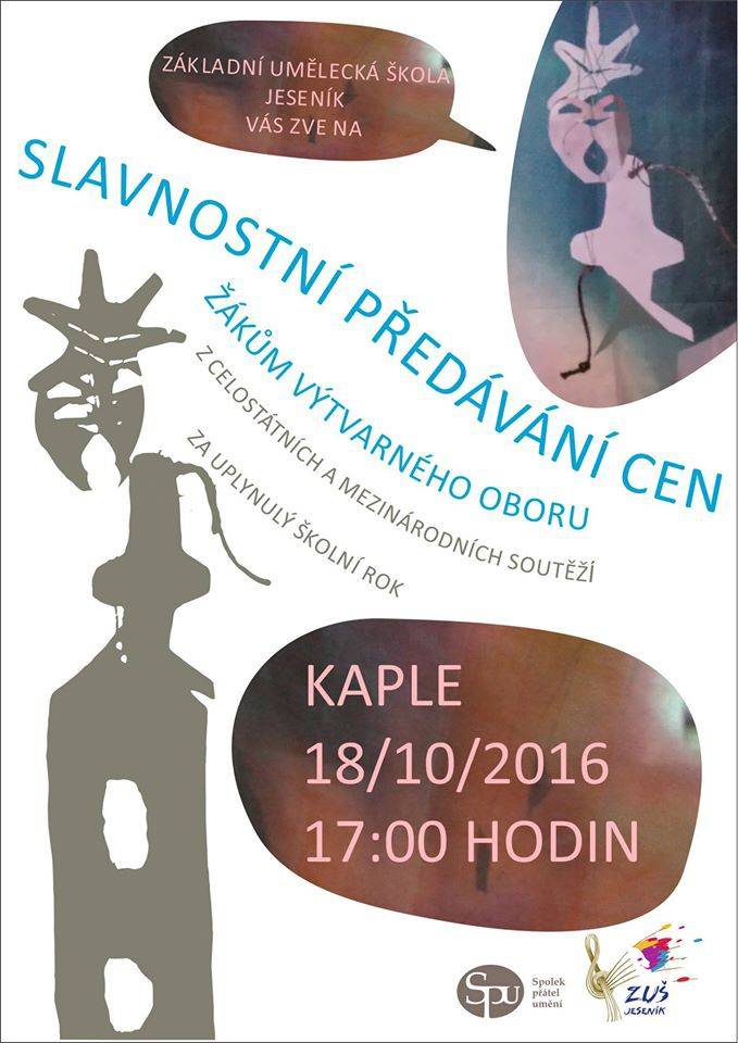 Slavnostní předávání cen a diplomů z celostátních a mezinárodních soutěží žákům výtvarného oboru ZUŠ Jeseníkúterý 18.10.2016 - Kaple 17 hodin