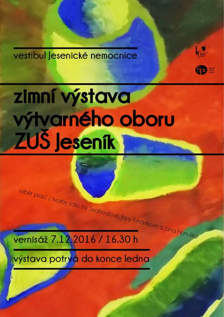 Zimní výstava výtvarného oboru ZUŠ Jeseníkvestibul Jesenické nemocnice vernisáž - středa 7.12. - 16.30 hodin